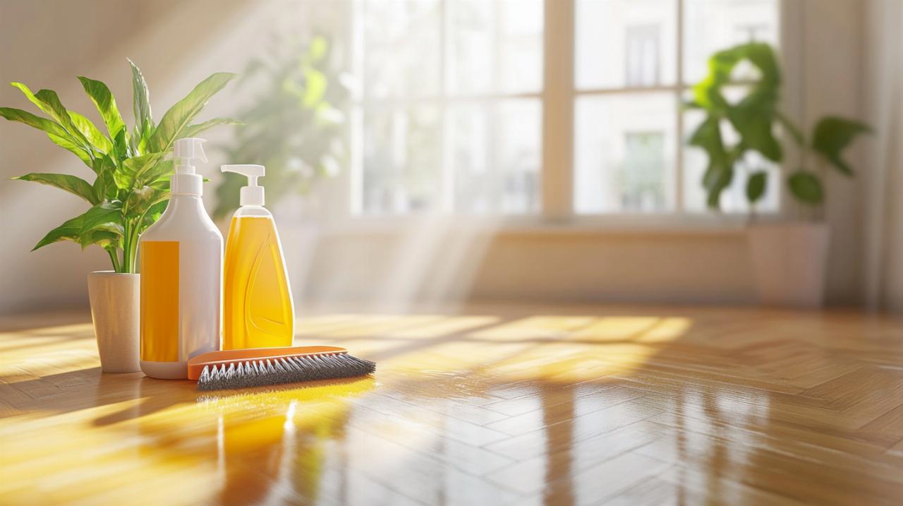 Après avoir retiré tous les matériaux contaminés, le nettoyage en profondeur de la surface constitue l’étape déterminante pour éliminer définitivement les colonies fongiques. Commencez par aspirer méticuleusement la zone avec un aspirateur équipé d’un filtre HEPA afin de capturer les spores microscopiques invisibles à l’œil nu. Un aspirateur ordinaire est absolument à proscrire car il redistribuerait simplement les spores dans l’air sans les retenir. Ensuite, préparez votre solution de nettoyage en fonction du type de surface à traiter. Le vinaigre blanc non dilué s’avère particulièrement efficace sur les surfaces en bois car il pénètre dans les fibres sans les endommager. Appliquez-le généreusement à l’aide d’un pulvérisateur et laissez agir au moins une heure avant de frotter avec une brosse à poils durs.
